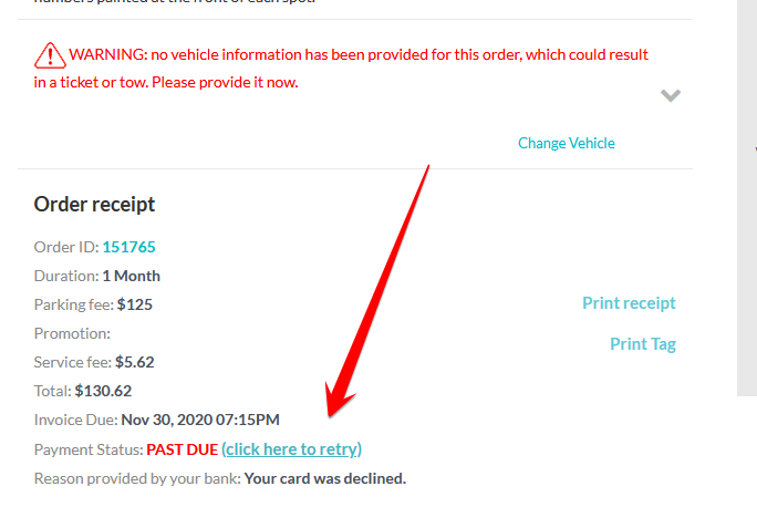 My monthly subscription payment failed because of insufficient funds, how do i retry charging a new credit card?